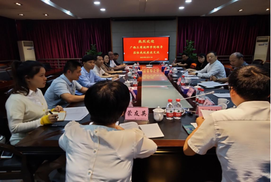 杨云奇副校长对广西工商技师学院的到访表示热烈的欢迎,并向来宾介绍了我校建校历史、专业设置、发展成果等情况。李勇伟副院长介绍了广西工商技师学院的基本情况,希望以此次交流为契机,相互学习借鉴、推动两校共同发展。