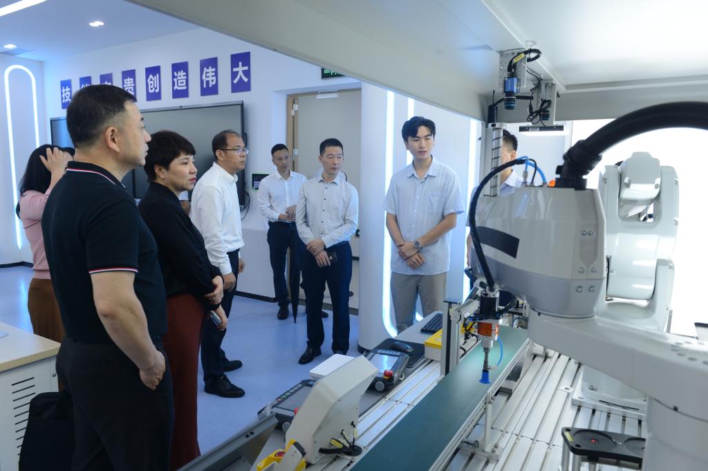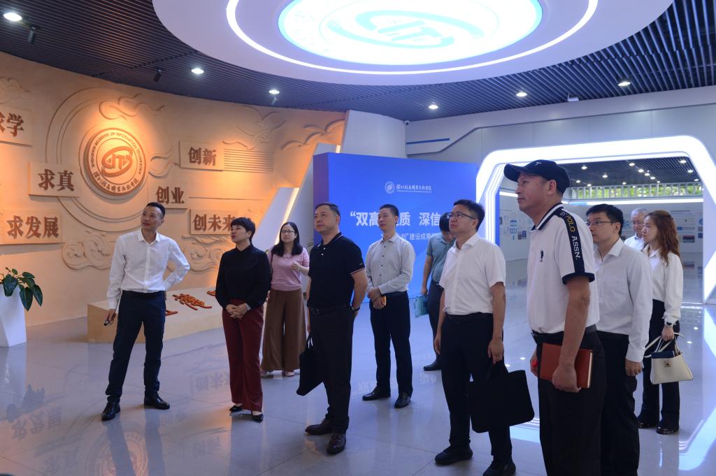 调研组一行先后参观了深圳信息职业技术学院“双高计划”建设成果展,实地考察了汇川高等工程师学院等校内实训基地及科研基地。