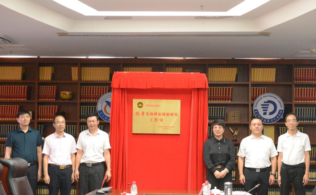 仪式上,东莞市社科联党组书记、主席,社科院院长张卫红,我校党委书记司琪、党委副书记、校长贺定修,东莞市社会科学界联合会党组成员、四级调研员于洪波,东莞市社会科学界联合会四级调研员彭显红共同为东莞市社科名家操奇党的理论创新研究工作室揭牌。