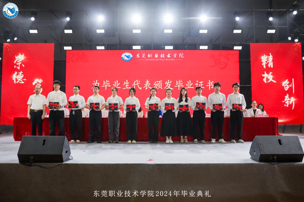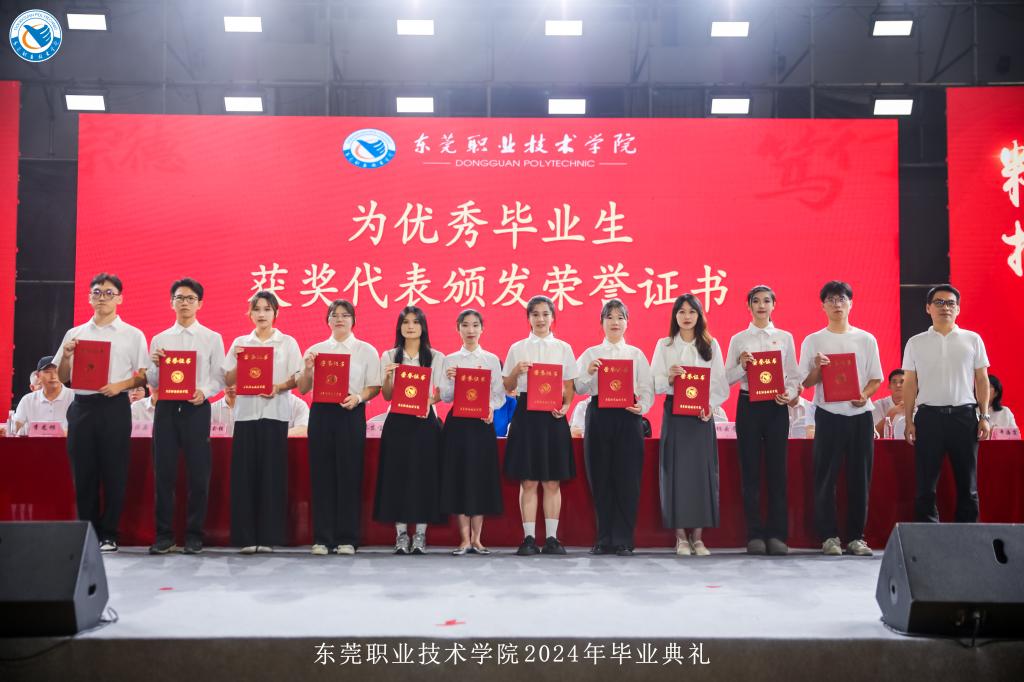 毕业典礼上,校党委委员、党委宣传部部长杨洋宣读《关于表彰2024届优秀毕业生的决定》文件。党委副书记、纪委书记蔡东宝向获表彰的优秀毕业生们颁发荣誉证书,党委副书记、校长贺定修为毕业生代表颁发毕业证书。