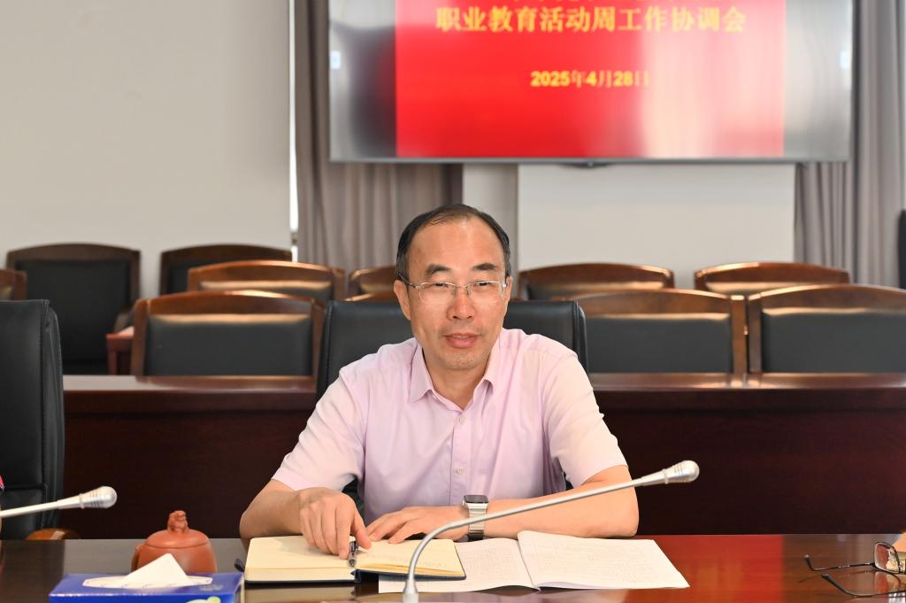 贺定修校长对筹备2025年职业教育活动周工作提出三点要求,一是要高度重视,精心谋划。各部门要以活动周为契机,强化部门合作、校企联动,做到提前布局、责任到人、落实到位。二是要紧扣主题,突出亮点。紧扣“职教成果”,充分展现我校办学特色和育人成效,增强活动感染力,提升社会认可度。三是要注重实效,强化宣传。将职业教育活动周与产教融合、现场工程师培养等工作紧密结合,依托官方媒体、新媒体等渠道扩大传播力、影响力,确保活动办出实效、形成长效。