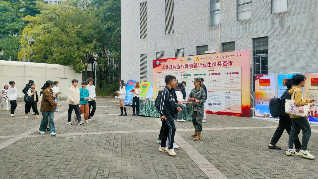 为积极响应国家号召,鼓励我校学生携笔从戎,到军营建功立业,激发学生参军入伍的热情,12月1日,学校保卫处(武装部)在学校滋兰餐厅前举办2024年春季征兵宣传活动。