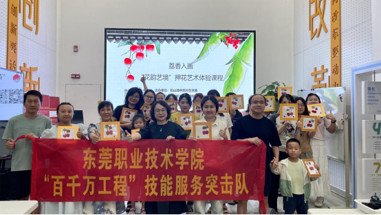 7月17日晚上,我校“百千万工程”技能服务突击队与松山湖中部片区党委携手,在双创社区阳光雨党群服务中心举办“荔香入画——花韵艺境押花艺术体验课程”公益美育活动。